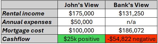 What happens for most investors is that they cover the bank’s negative view of their portfolio’s cashflow from their other income streams. Then as their portfolio grows, most tend to eventually hit a ‘servicing’ wall.